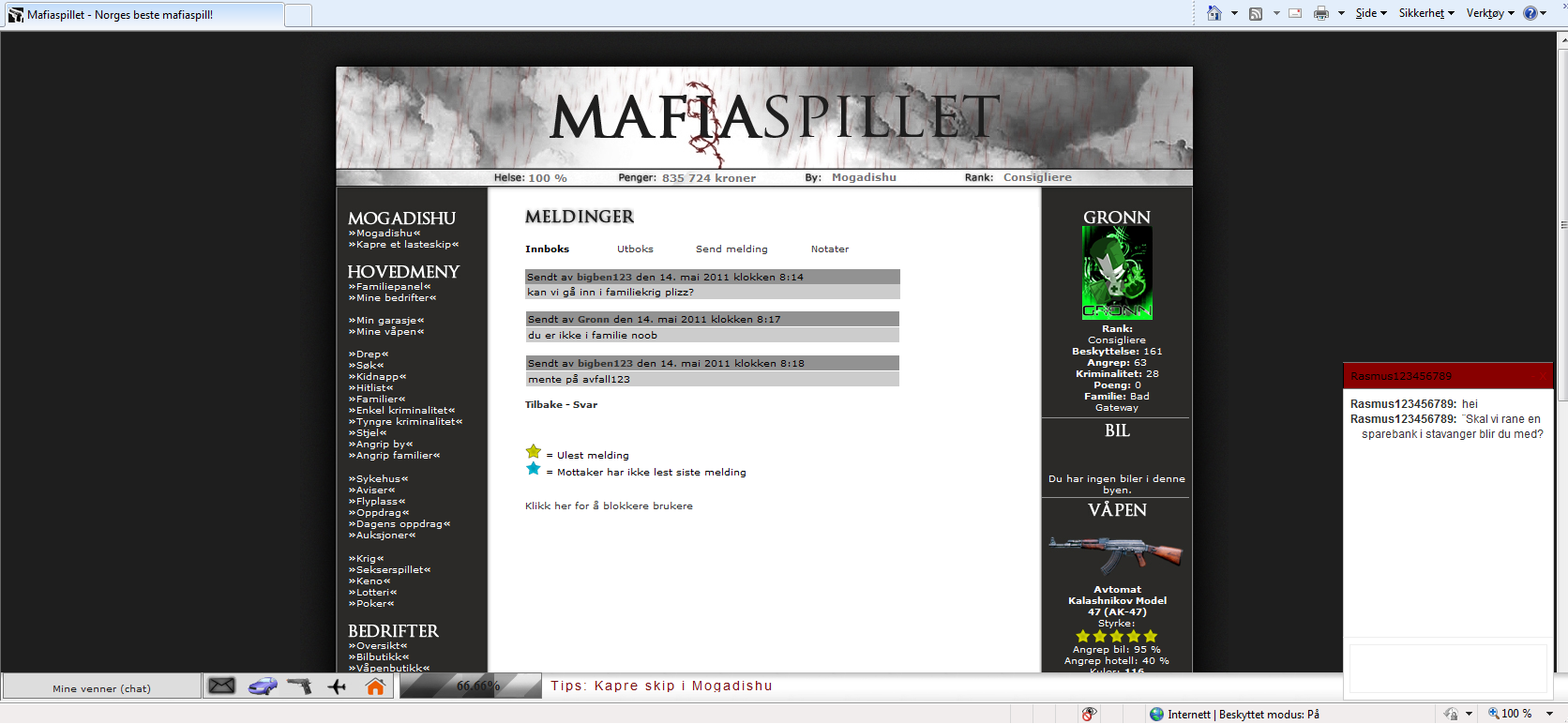 «Husker i runde 7 da vi gikk inn på klassekameraten sin pc, gikk ut av hotell. Skøyt som bare faen men 3 personer klarte ikke å drepe mer enn 3 undersåtter (med nulling) :(»