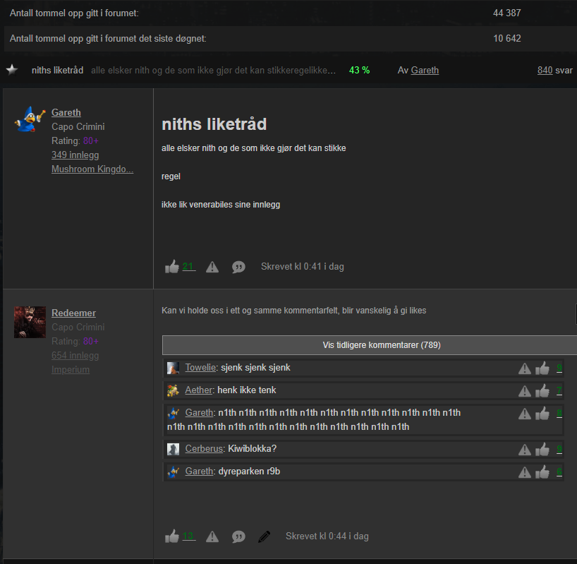 «Savner å være like nr 500 utfordringen og lage slik at det sto 499 som liket profilen bare for å booste likeknappen i tillegg.»